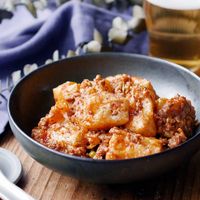 ・木綿豆腐はキッチンペーパーで包み、水気を切り2cm角に切ります。