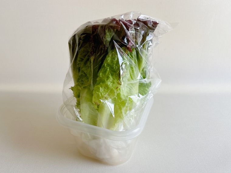 - ポリ袋に入れたら軽く口を閉めて、冷蔵庫の野菜室へ入れる(写真4)