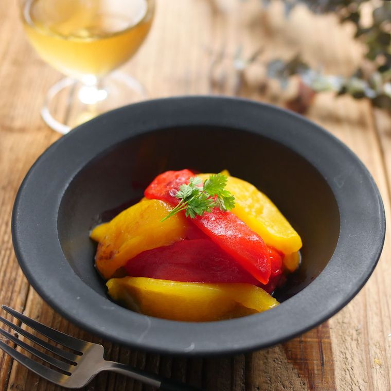 パプリカをトースターで焼き、オリーブオイルやはちみつで作るマリネ液に漬けると、とろけるような食感に。甘くてやわらかなパプリカは、箸休めにもワインのお供にもぴったりですよ。焼きたてのパプリカはとても熱いので、皮をむくときはヤケドに気を付けてくださいね。