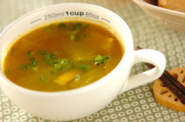 キャベツとベーコンにカレー粉を加えたひと品です。カレーのスパイシーな香りが広がり食欲もアップ!具だくさんにすれば、食べ応え満点のおかずスープの完成です。キャベツのうま味が味わえるおすすめのレシピですよ。