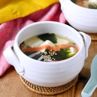 1. 鍋に水と調味料を入れて火にかけ、沸騰したら、しめじ、長ねぎ、わかめを加えてひと煮立ちさせます。