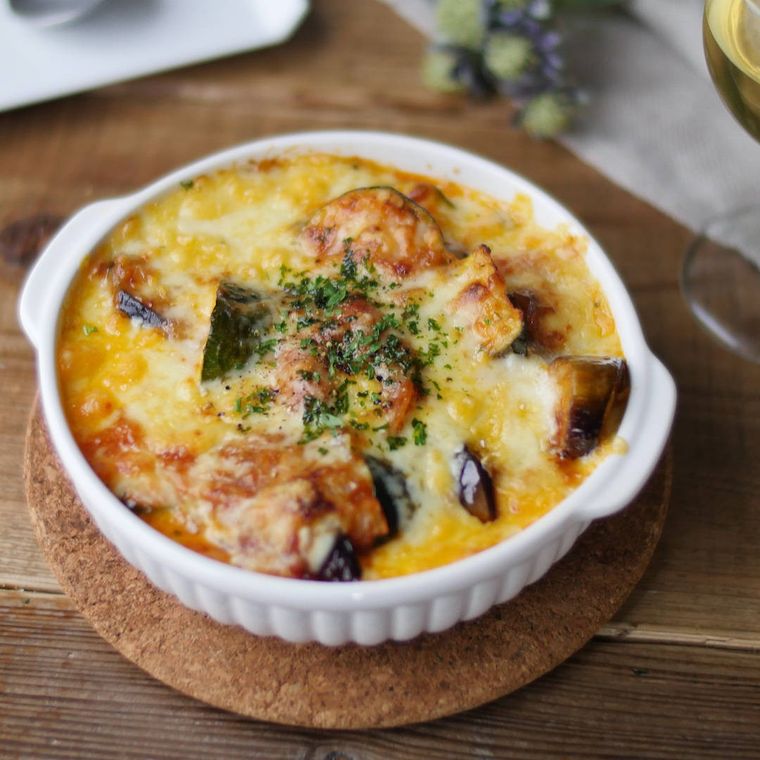 牛肉となすのガリバタ炒めは、ふわっとにんにくとバターの香りが漂う贅沢なひと品。旨みたっぷりの牛肉としっとりやわらかいなすに味がしみ、ごはんをガッツリ食べたいときにおすすめです。なすは全体にきれいな焼き色がつくまで焼くと甘みが増します。味付け前にじっくり焼くのが成功のコツですよ。