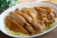 肉を取り出し、冷ましてからスライスします。煮汁をかければできあがり!白髪ねぎやかいわれ大根を添えると、彩りがアップしますよ。
