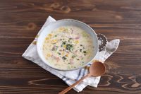 日本で一般的にポタージュと呼ばれるスープは、フランス語でpotage lié(ポタージュ・リエ)。お米や小麦粉などでとろみをつけるのが特徴です。クリーミーな口当たりはビスクと似ているものの、ビスクはこれらでとろみをつけない点が違います。