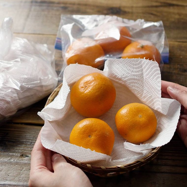 - 乾燥防止のためキッチンペーパーや新聞紙で包みポリ袋や保存袋に入れて口を閉じる