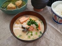 酒粕が鮭の生臭さを抑えて、まろやかに仕上げてくれます。鮭のアラもおいしく頂けるのもうれしいですね。ぶつ切りにしたとうもろこしを加えたり、帆立貝やえびを加えるのもGood。