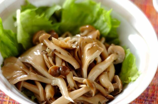 きのこをしんなりするまで蒸し煮したあと、砂糖やワインビネガーでさっと和えるだけ。ワインビネガーがない場合は、おうちにある酢で代用してもOKです。