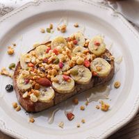 アメリカでこよなく愛されているトーストです。表面をサッと焼いて、ピーナッツバターを塗り、バナナをのせます。お好みではちみつをかけると、甘さのなかの塩気が良いアクセント!サクッとした食感と、ペーストのとろりとした組み合わせが味わえます。バナナ入りトーストは、手軽なエネルギー補給にも。