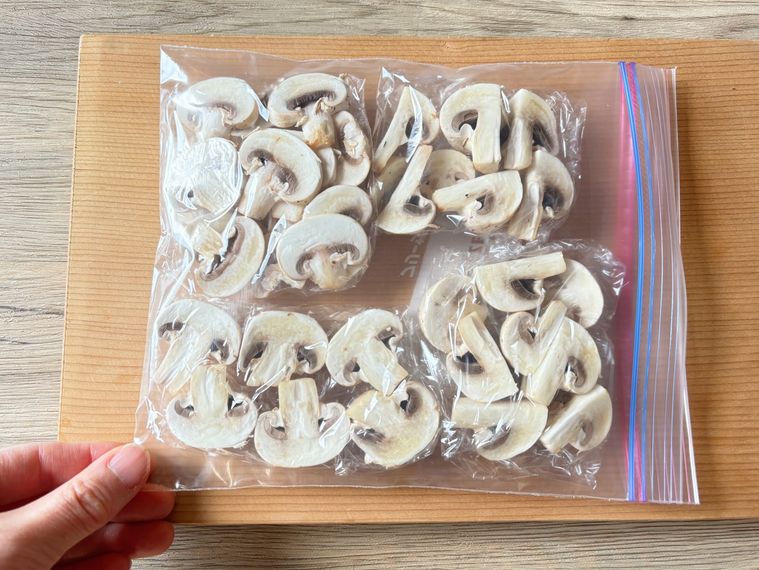 「マッシュルームは水分が多いので、でき上がりは1/5量くらいになります。個体差がありますが、炒める時間はトータルで30~40分が目安。1パックで作るなら10分くらいです」