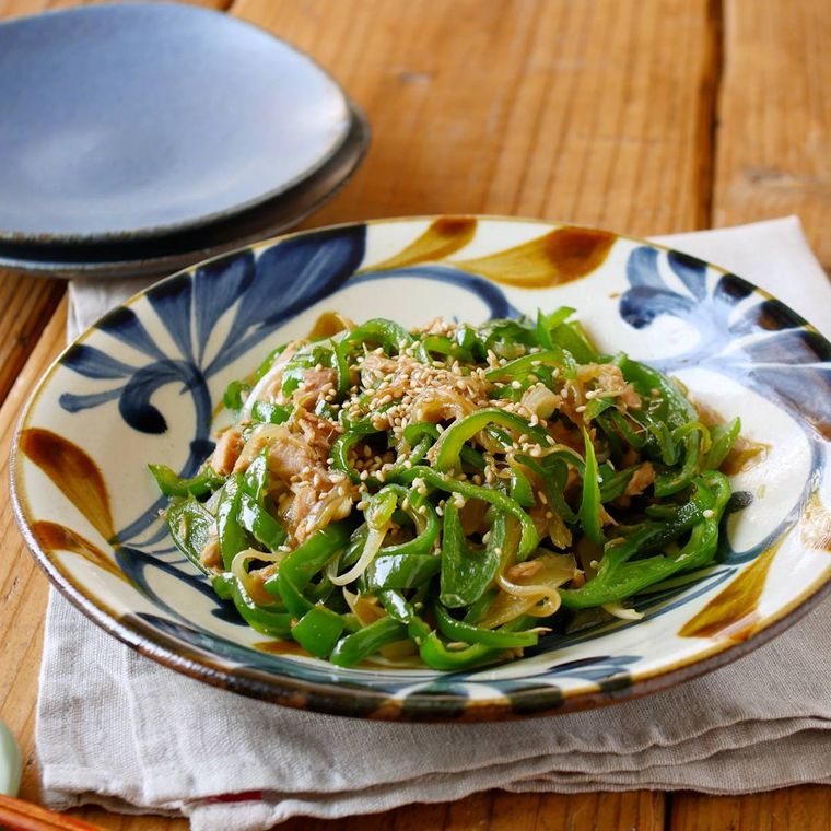 ピーマンは水洗いをしてキッチンペーパーで水気を拭き取ります。