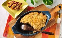 アルミホイルの器に①を入れ、表面にパン粉とサラダ油をかけます。トースターで10分焼きます。