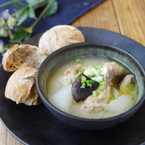 大根は細かくさいの目切りにすると、火が通りやすいですよ。ミニトマトやブロッコリーなどを合わせ、カラフルなスープに仕上げましょう。塩麹をほんの少し加えるだけで、食材の甘味がぐんと引き立ちます。パンやパスタに添えて、ランチタイムにいかがですか。