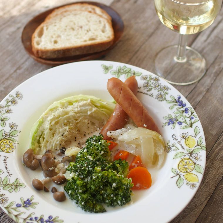 ホームベーカリーを使ってパン生地を作り、オーブンで焼いたレシピです。なかの具材は合いびき肉とキャベツのみで、調味も塩胡椒だけというシンプルな味つけ。ふわふわの総菜パンのような見た目で、キャベツの甘みとお肉のうま味がダイレクトに味わえる、飽きのこないおいしさがいいですね。