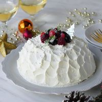 6. しっかり固まったら、ケーキの上にいちごやブルーベリー、ミントなどを飾ってできあがり
