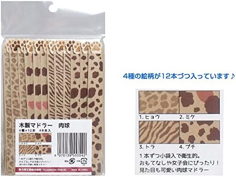 4種類の柄がセットのマドラーです。48個入りなので多くの方にたっぷりご利用いただけますよ。木製マドラーの先には焼き印された肉球がデザインされています。