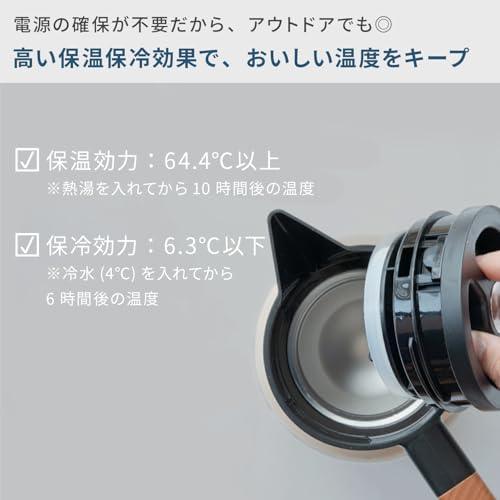 シックなブラックの質感が目を引く、ヴィンテージ感漂うポット。出しっぱなしでも生活感を感じさせない無骨なフォルムは、モダンなキッチンや書斎のインテリアにもしっくり馴染みます。 もちろん、魔法瓶構造による保温力も優秀。1.2Lとたっぷり入るので、一度お湯を沸かせば、淹れたての温かさを長時間キープできます。片手で注げるワンタッチレバー式で、家事や仕事の合間でもスマートに温かい一杯を楽しめますよ。
