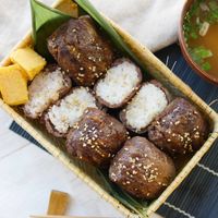 宮崎県のB級グルメとして、一躍人気になった肉巻きおにぎりの作り方をご紹介します。おにぎりに豚肉を巻いて甘辛いタレを絡めたひと品です。ボリューム満点でお弁当にもぴったり♪ 今回は豚バラ肉を使いましたが、脂控えめで作りたい方はロースやモモなど、部位を変えてもOK。しゃぶしゃぶ用などの薄いお肉でも作ることができます。