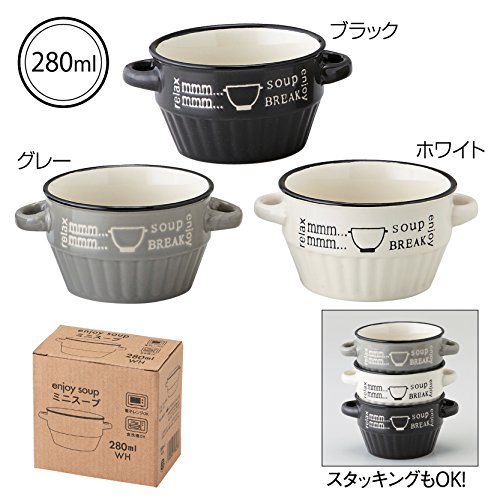 重ねて収納できるおしゃれなスープカップです。両方に取っ手が付いているので熱々のスープでも飲みやすいのが嬉しいですね。色はグレーのほかに、黒と白があるので色違いで重ねてもおしゃれですよ!ワンプレートディッシュと合わせればカフェ風ご飯のできあがり♪容量も280mlと満足のいくサイズです。
