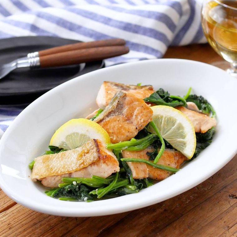 しめじや玉ねぎと一緒に焼いた鮭ハラスを、メイプルシロップとみそのタレで味付けした甘めのチーズ焼きです。はちみつを調味料に使う炒め物はよくありますが、メイプルシロップは珍しいですよね。メイプルの香りとチーズの組み合わせは相性がいいので、ぜひ試してみてくださいね。