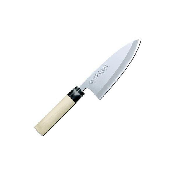 こちらはスーパーで通常パック販売されている「尾頭付き」の魚全般に使いやすいサイズの出刃包丁です。伝統的な和包丁で鋼と軟鉄を合わせた作りになっており、使用後にきちんと手入れ、研ぎを行うことで切れ味をキープできます。