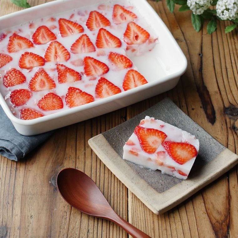 水を使わず、100%牛乳だけで作れるので濃厚なおいしさです。また、寒天とは異なったやわらかくてプルンとした食感も楽しめますよ。