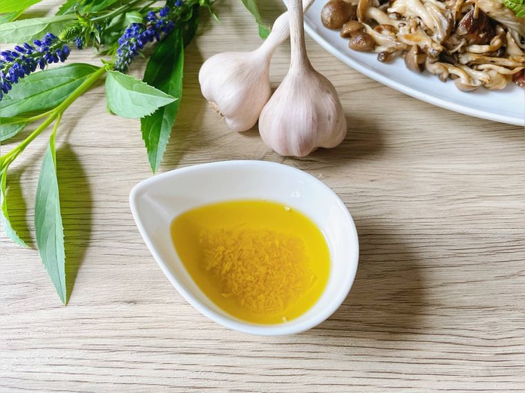 ニンニクの香りが移った醤油と漬け込まれたニンニク、どちらも調味料として使えるので、作り置きしておけば何パターンものアレンジを楽しめる。