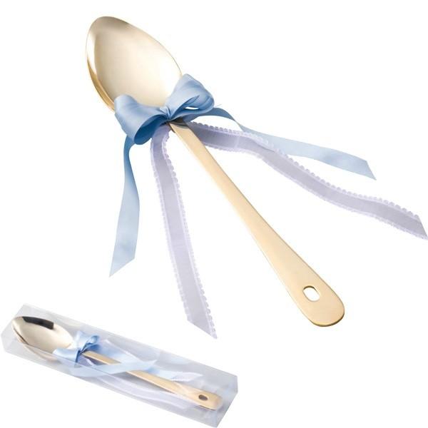1. サムシングブルーのリボンが決め手!「東亜金属 ビッグウェディングスプーン」
