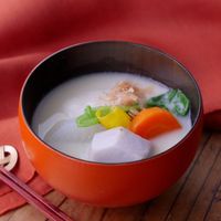 ホワイトソースを使わず、丸餅と片栗粉でとろみをつけるグラタンです。牛乳とみそで濃厚な味わいの和風グラタンに仕上がりますよ。長ねぎやさつまいも、ブロッコリーなど食べ応えのある野菜たっぷり。丸餅が溶けてしまわないように弱火で煮てくださいね。