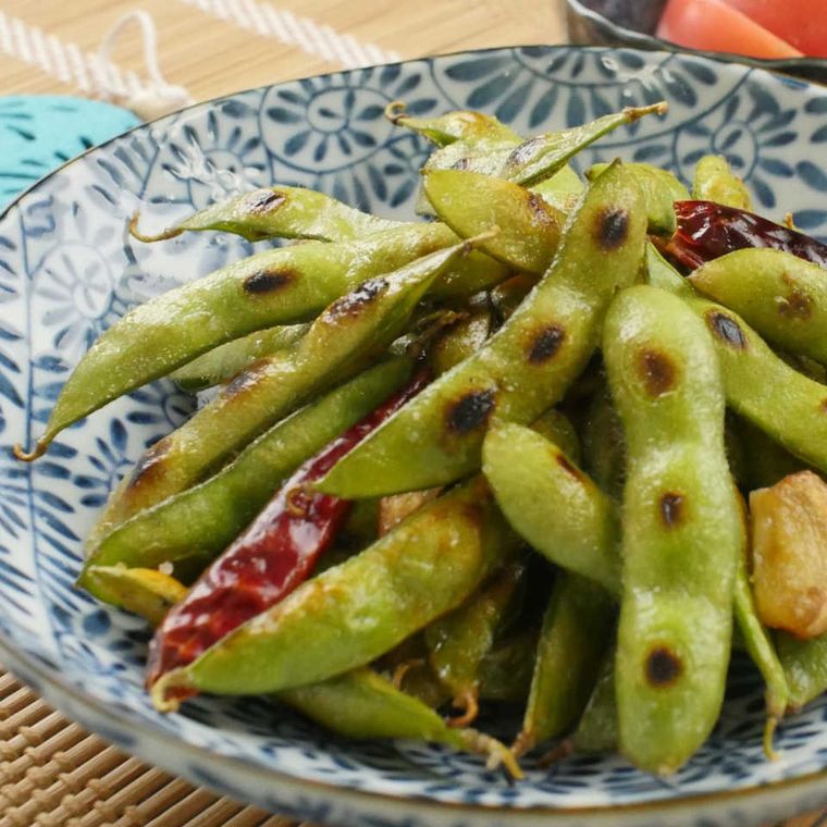 生の枝豆を、サヤごとガーリックとオリーブオイルで焼いた、ペペロンチーノ風の焼き枝豆レシピ。にんにくの食欲をそそる香りは、おかずにもおつまみにもぴったりですね!枝豆は焼き色がつくまでなるべく動かさず、じっくり焼いてください。