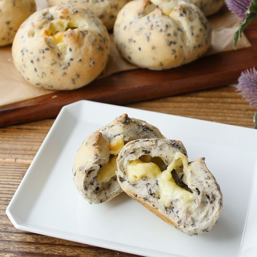 相性が良い黒いりごまとプロセスチーズ入りのパンは、おやつにぴったりです。甘くないので食事にも合わせやすいです。黒と白で見栄えが良いため、友人宅へのお土産やおもてなしにも喜ばれますよ。