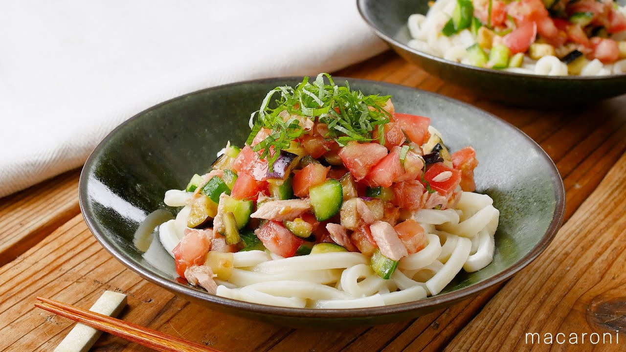 2. 暑い日にぴったり。夏野菜とツナのぶっかけうどん