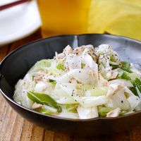 餃子の皮をタルト台にするユニークなレシピ。バターを塗って餃子の皮を3枚重ねて焼くと、パリパリ食感のタルトができますよ。キャラメルバナナとバニラアイスクリームをトッピングすれば、温かいキャラメルのほろ苦さと冷たいアイスクリームがベストマッチ。お子さまのおやつにもおすすめです。