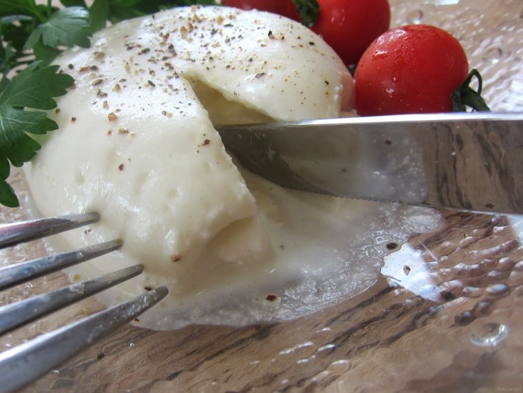 でき上がった焼きチーズの表面に乳清(ホエイ)がある場合は、ふきんやざるに置いてホエイを切るか、そのままフォークなどで取り分けてもおいしく食べられますよ。