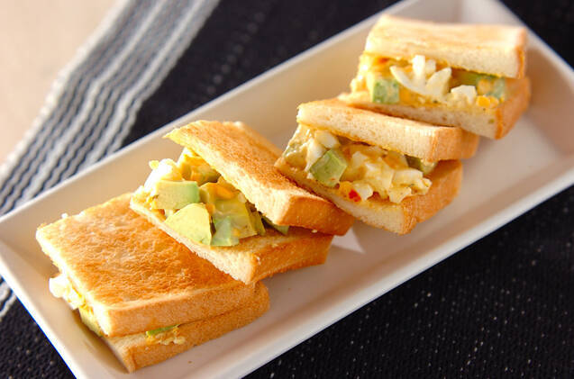 アボカド好きな方はゆで卵と一緒にマヨネーズで和えたタマゴサンドをいただきましょう。アボカドと卵の相性の良さを発見できますよ。アボカドは熟したものを使い、卵と一緒にある程度潰しておくとクリーミーです。