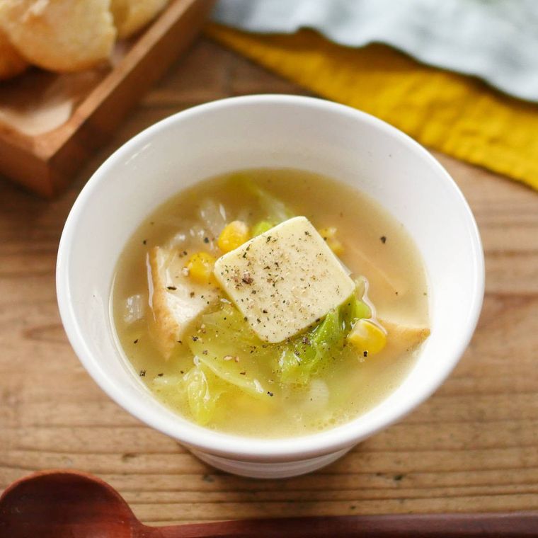 キャベツを半玉、ぺろりと食べてしまう豚バラ肉(薄切り)とキャベツのもつ鍋風。甘辛い味付けのスープと豚バラ肉の濃厚な味わいがキャベツにしっかり絡んで、最後までおいしくいただけますよ。ごはんにもよく合う味付けなので、おかずとしても楽しめます。