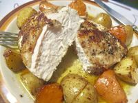 水分の蒸発を防ぐため、低温でじっくり焼きます。火の通りにムラが生じないように胸肉は使う30分前には冷蔵庫から取り出して常温に戻しておきましょう。