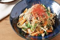 さっぱりとした塩味のチャプチェ。暑い日のおかずにぴったりの味わいです。鶏がらスープにナンプラーを使い、さっぱりとしただけではなく、ごはんにもしっかりと絡むように風味付けされています。いつもの濃い味に飽きたら、さっぱりとした塩味もおすすめですよ♪