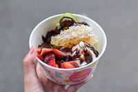 専用のボウルにご飯を入れて、韓国のナムルやキムチなど10種類の具材を好きなだけ盛る。お代わり自由で時間制限もなし。量も自分で調節できます。