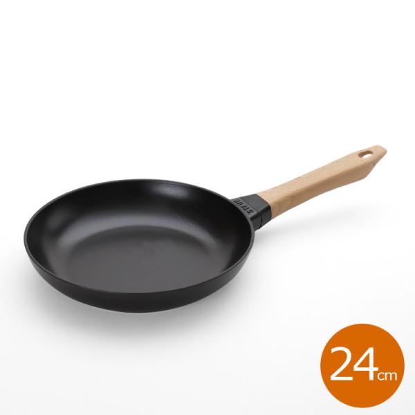 ストウブといえばお鍋が有名ですよね。ですが、フライパンも種類豊富なんですよ。ウッドハンドルフライパンは、鉄フライパンなのですが調理面に黒マットエマイユ加工されており、扱いやすくなっているのが特徴です。