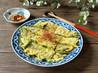5分ほど焼き、全体がこんがりと色づいたら食べやすい大きさに切ったら完成です♪小口ねぎをトッピングして召し上がれ。