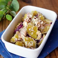 ミックスナッツを加え、全体にまとまり糸がひく程度になるまで絡めます。