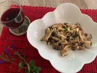 きのこ本来の旨味を引き出すのは、シンプルな調理が一番。オリーブ油とにんにくで炒めて、仕上げでバターをからませます。味つけは塩コショウのみ。白ワインで香りづけするのがポイントです。さわやかな風味がワインにピッタリ♪
