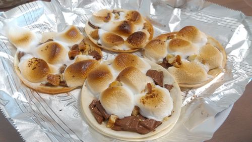 餃子の皮にチョコレート、マシュマロ、ミックスナッツを散らします。