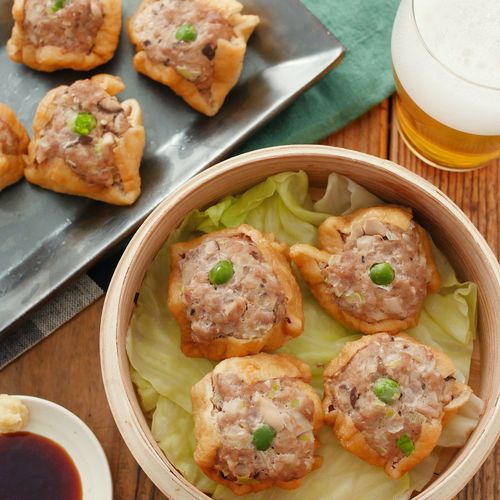薄くスライスしたれんこんをぎょうざの皮に見立てたれんこん餃子は、包む手間がぐっと省け、見た目のインパクトも抜群! こんがりと香ばしい焼き色は餃子と変わらず、食欲をそそります♪