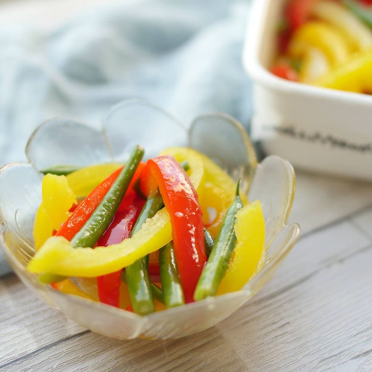 ※撮影のため、つやつやのパプリカを使用していますが、お買い得の割引品でも仕上がりのおいしさは同じです。安いパプリカを見つけたら即買いがおすすめです。