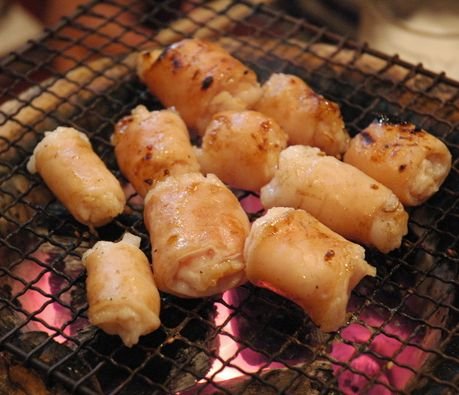 生で新鮮なものを焼肉にする場合は、ぬめりを流水でもみ洗いする程度で十分。ただし身の外側の白い皮は火が通るとかなり硬いため、細かく包丁を入れると食べやすいですよ。