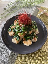 マヨネーズ+ポン酢はおいしさ間違いなしといえる調味料の組み合わせですね。パプリカの鮮やかな赤色が食欲をかきたてます!