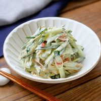 カニカマは菜箸でほぐします。