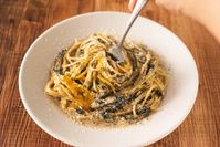 昔から味付け海苔が大好きで、料理にはよく使うんです。海苔でなにかを巻いてみたり、揉み海苔をかけたり……。そんななか、ふと思ったんです、海苔を味わえるパスタを作りたい!って。で、いろいろ試して完成したのがこれ!