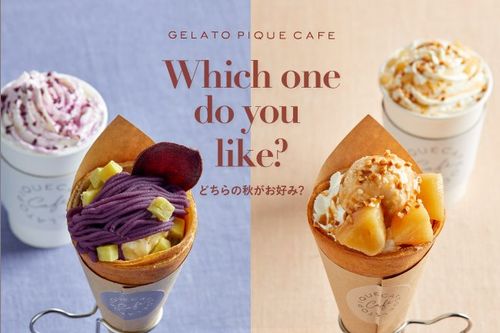 「gelato pique cafe(ジェラート ピケ カフェ)」から、2020年10月15日(木)〜11月15日(日)の期間限定で、秋の食材 “紫芋” と “りんご” を使用した商品が販売されています。